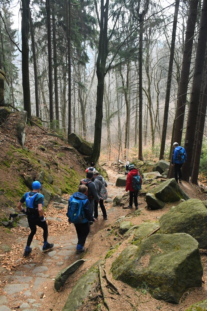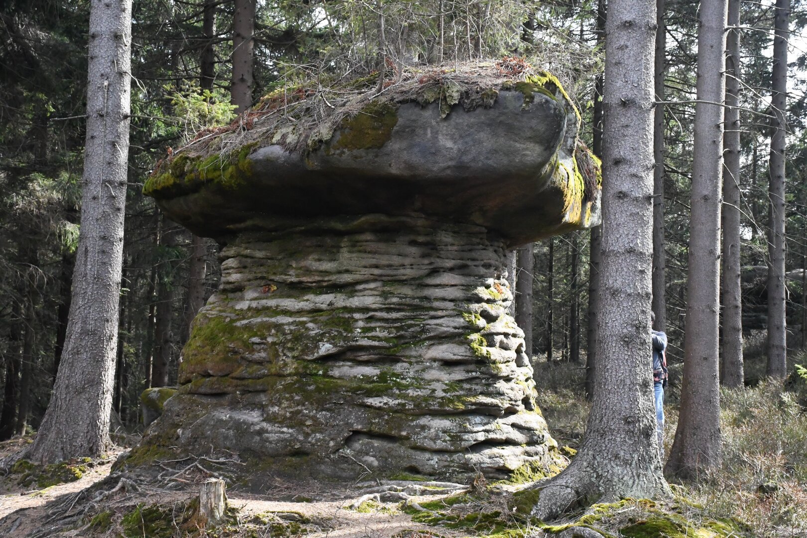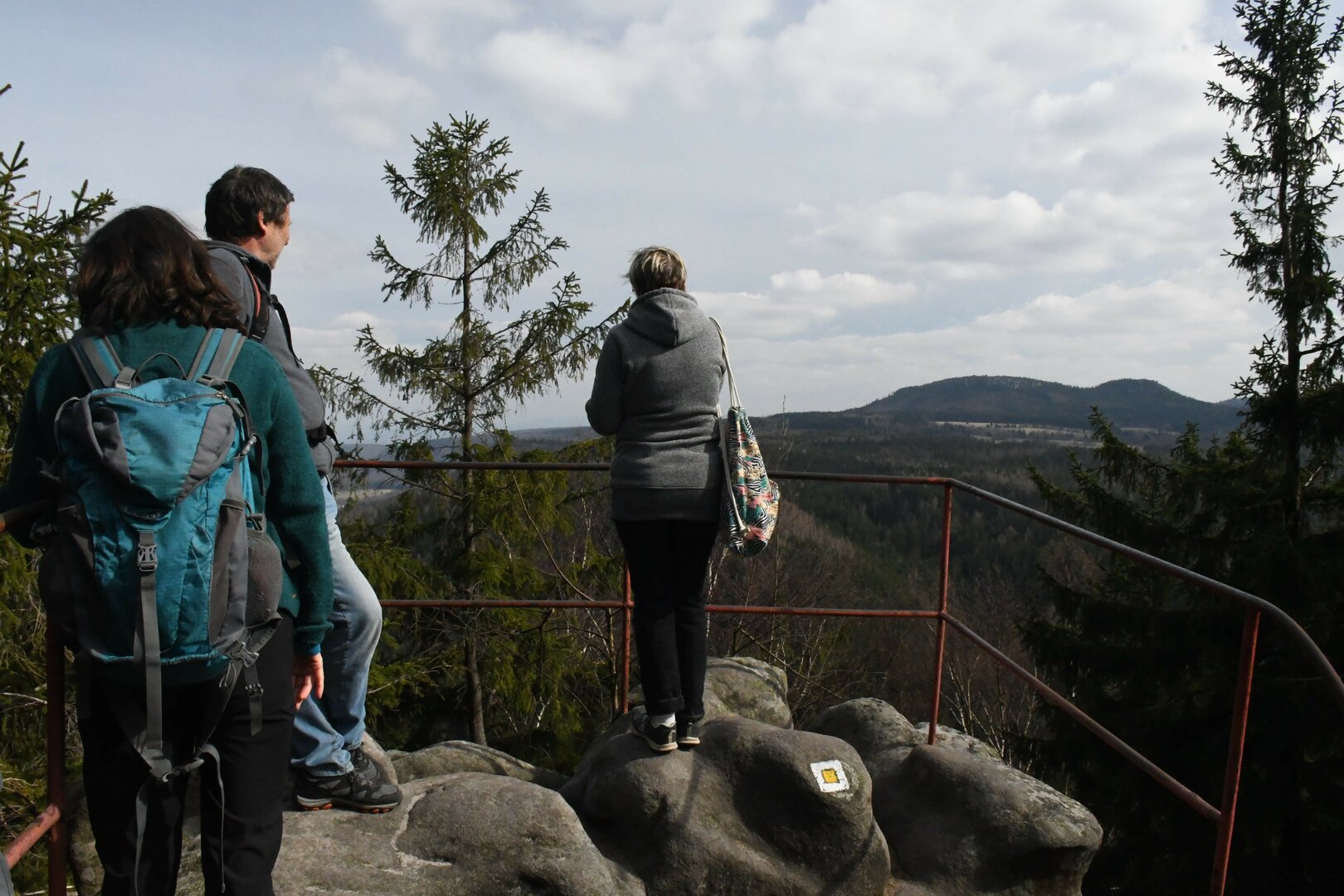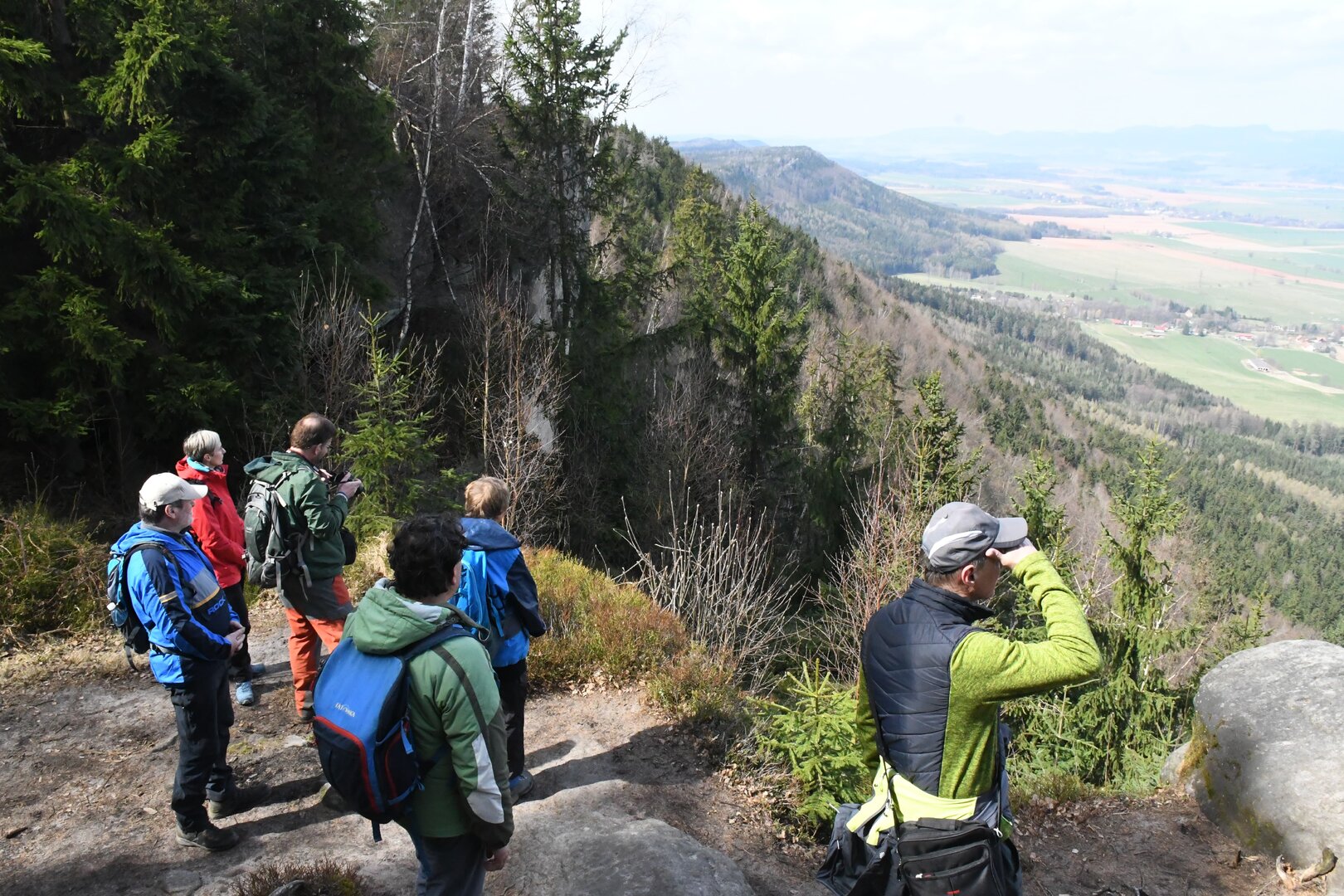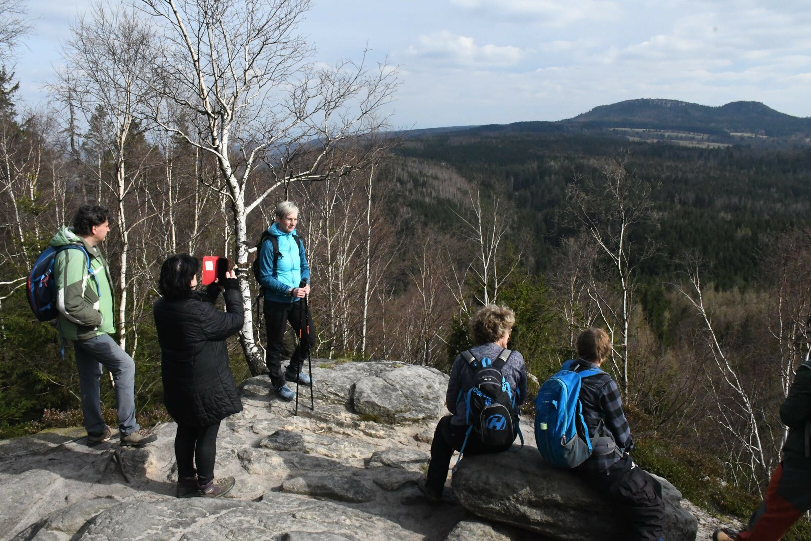 Ze Slavného jsme sestoupili Zaječí roklí na Dobytčí stezku a úbočím přes Třešňovou rokli došli k prameni pod Velkou kupou. Po obědové přestávce s pramenitou vodou jsme se zastávkami u Kamenné brány a vyhlídce na Broumovskou kotlinu pokračovali na vyhlídku na Koruně s úžasnými výhledy z ptačí perspektivy. Prošli jsme skalní zoologickou zahradu s množstvím kamenných přírodních plastik nejrůznějších zvířátek a hřibovitých výtvorů na Božanovském Špičáku.