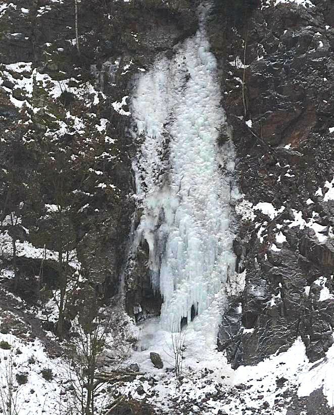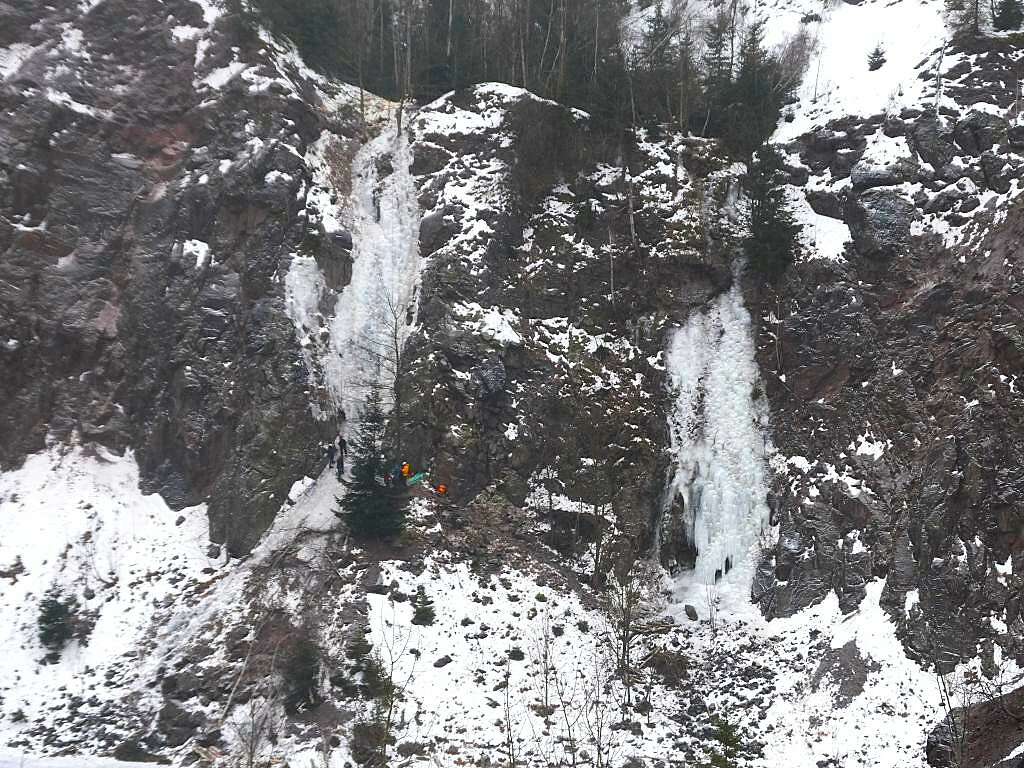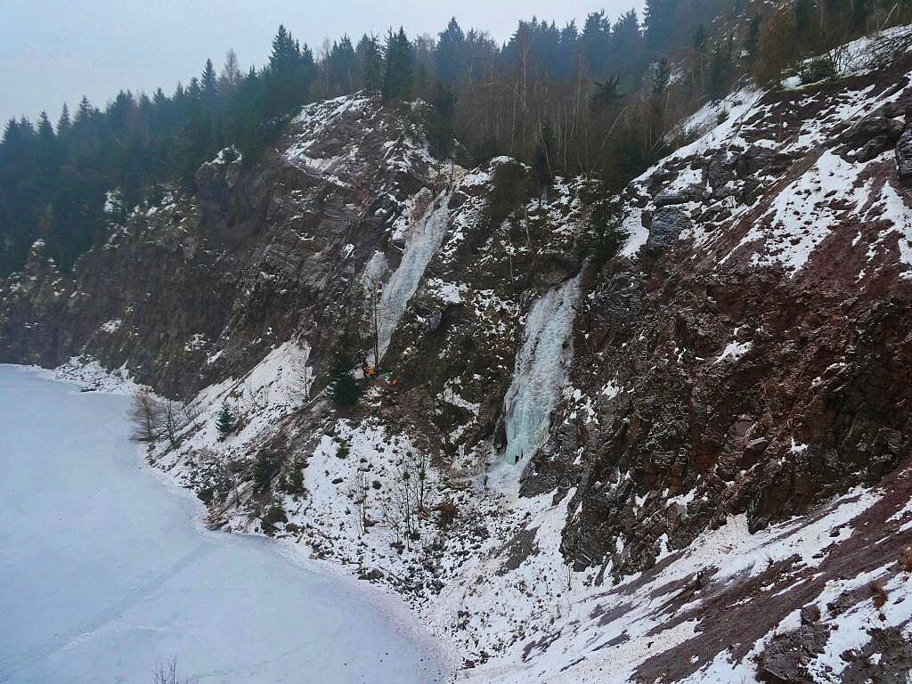 Dlouhé mrazivé počasí vytvořilo v lomu Kamyki na polské straně Javořích hor mohutné ledopády.